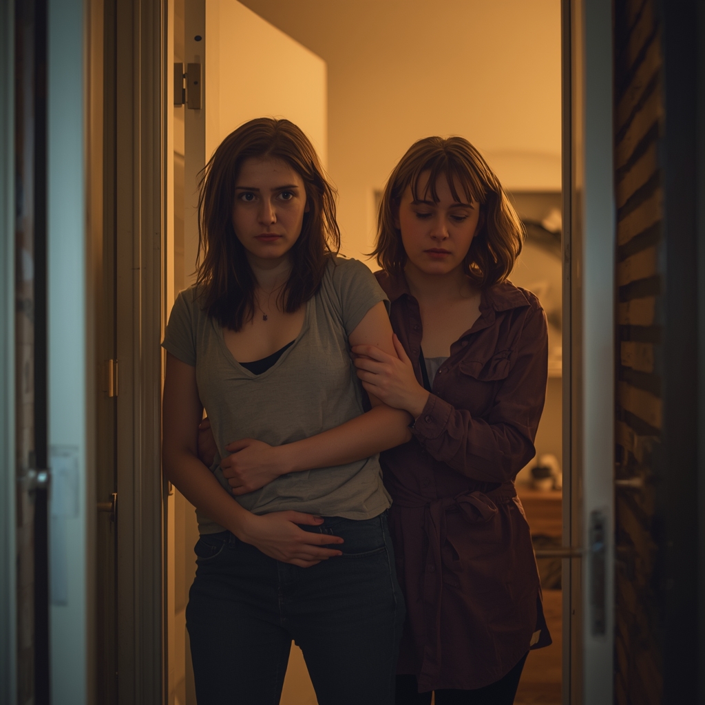 Лена стояла на пороге. Рука прижата к животу, дышит тяжело.