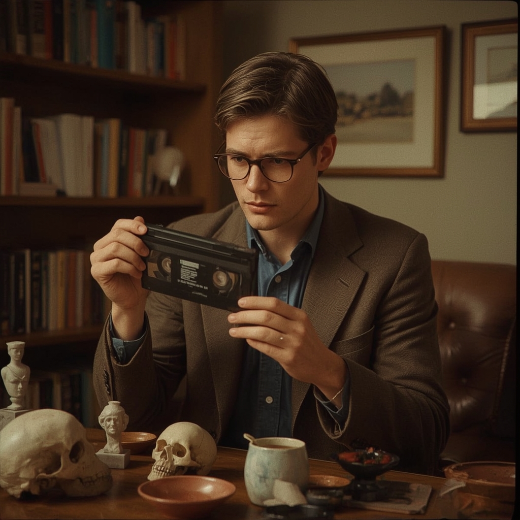 Он задумался, потом зачем -то потянулся к видеомагнитофону, в нём была кассета.