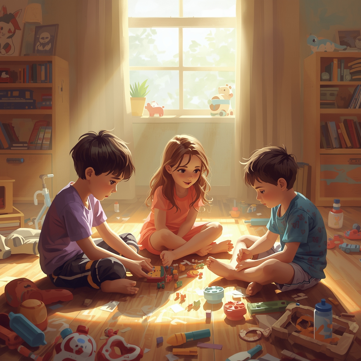 — Кто это сделал? – строго спросила мать, снимая игрушку. Она отдала котика Пашке, который сидел на полу на коврике. Глаза его были еще мокрые от слез. Полина хихикала, а Данька хитро улыбался.