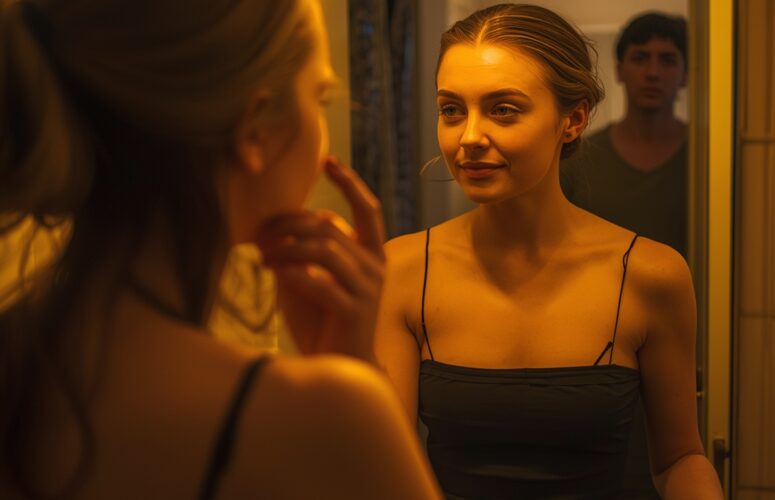 Две женщины и мужчина сидели в комнате и искоса поглядывали