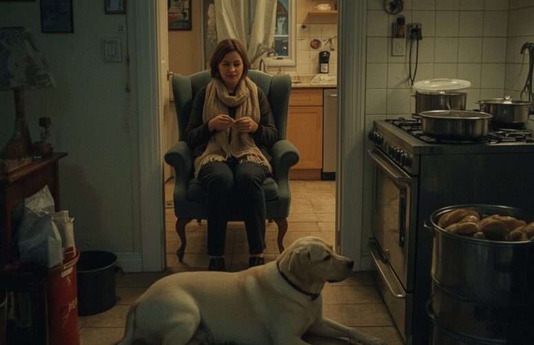 Лена вязала теплый шарф. На кухне варились два вида супа.