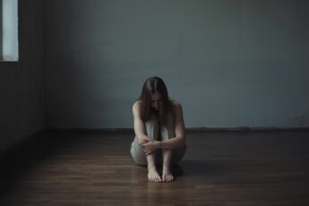 Девушка плакала, сидя на полу абсолютно пустой комнаты.