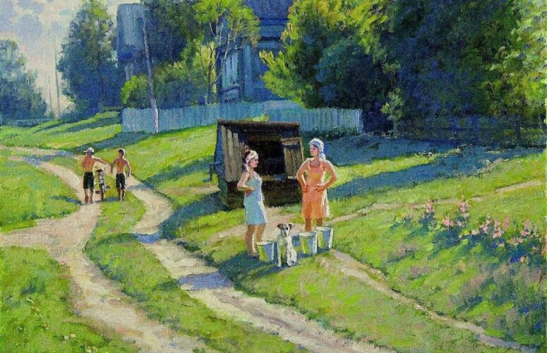 Возле светлого палисадника, воюя с кустом крапивы