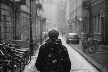 Она бежала по лужам сквозь моросящий осенний дождь.