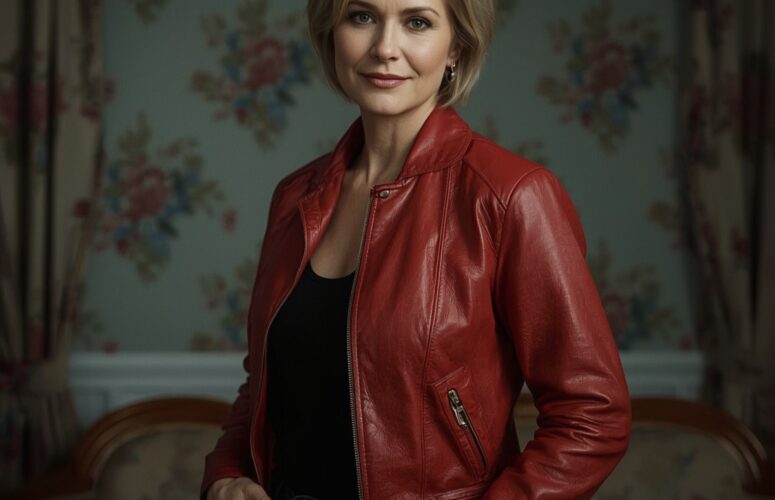 Молодая женщина в элегантном брючном костюме подошла
