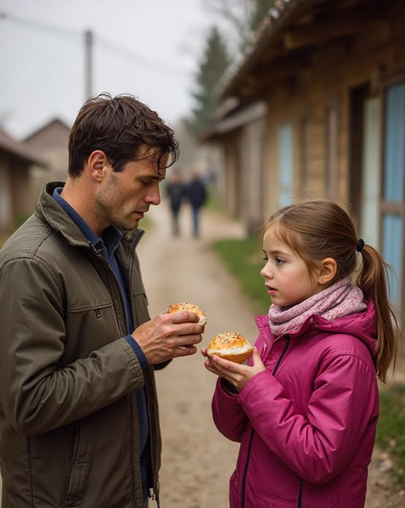 Андрей не смог пройти мимо. Его ноги сами замедлили шаг, сердце сжалось от боли, и он, преодолевая внутреннее колебание, присел рядом с ней. Из кармана он достал ту самую булочку и протянул ей. Девочка вздрогнула от неожиданности, словно привыкла к тому, что люди просто проходят мимо, не обращая внимания. Но затем робко взяла угощение своими маленькими, окоченевшими от холода пальчиками. Её взгляд встретился с его взглядом, и в этом коротком моменте Андрей прочитал благодарность, удивление и даже какую-то детскую веру в то, что мир всё ещё может быть добрым.