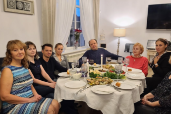 Костя вернулся домой поздно. Увидев накрытый стол и Полину в новом платье, он удивленно поднял брови.
