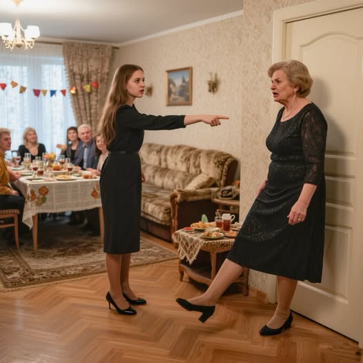За столом повисла звенящая тишина. Галина Петровна побледнела и опустилась на стул, ошеломлённо глядя на невестку. Сергей привстал: