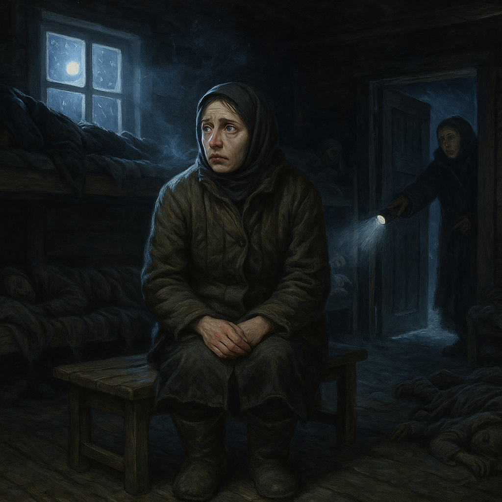 Стали просыпаться и ворочаться на своих местах женщины. Кто–то зажёг свечу. Этого делать было нельзя! Сейчас придет охрана, накажет виновных в нарушении порядка!