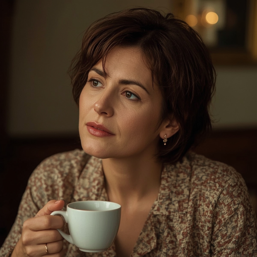 Она звякнула ложечкой в чашке некрепкого чая, потянулась и опустила ее на стол. Глаза ее прищурились. Во взгляде читался неподдельный интерес. Голова была чуть наклонена набок. Короткие волосы отдавали бордовым оттенком. В ушах блеснули золотые серьги-гвоздики с какими-то фиолетовыми камушками.