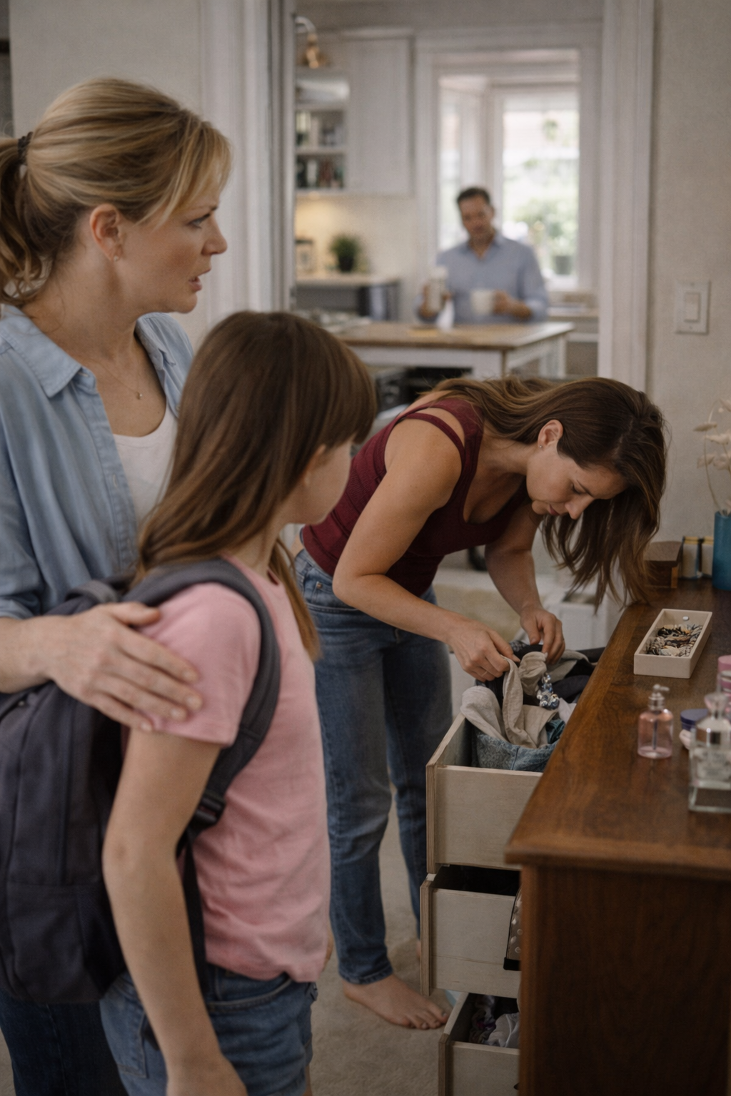 Ксюша перестала плакать. Она прижалась к матери и дрожала, будто замёрзла, хотя в комнате было тепло.