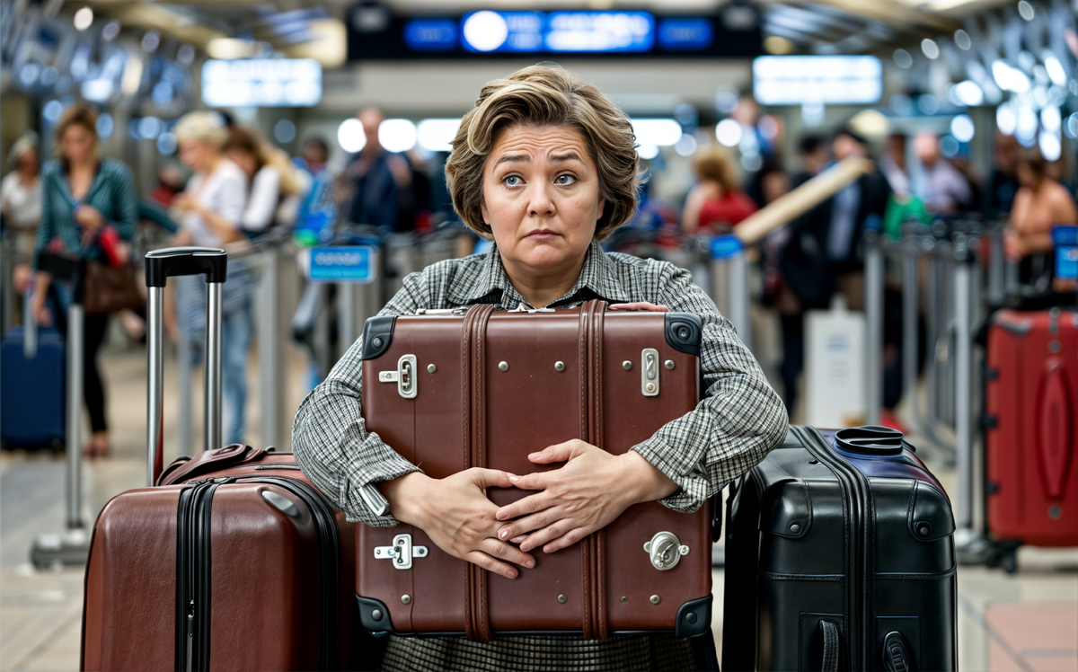 Тучная женщина и девочка подросток стояли около входа в аэропорт и переминались с ноги на ногу.