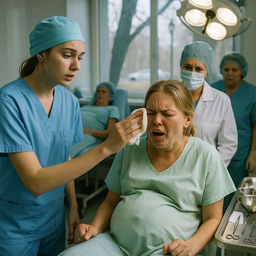 — Серова? Встань в сторонке. Пока только смотри, — начала Ольга Олеговна, поправив маску на своем лице. — Здесь схватки уже долго, стимулировали. Тридцать пять лет, первые роды, – она показала глазами на белокурую, худенькую женщину. – Здесь все получше, – врач кивнула на вторую роженицу, что, с набухшими на шее венами, силилась вытолкнуть ребенка.