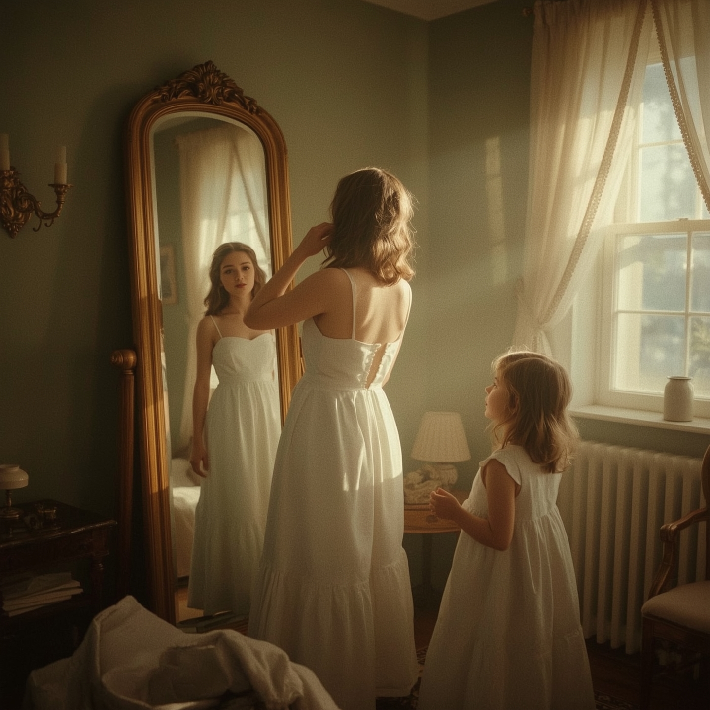 Она очень волновалась перед встречей, боялась не понравиться. Долго выбирала наряд, накрасилась, а потом умылась, надела простенькое платьице, на затылке закрепила волосы.