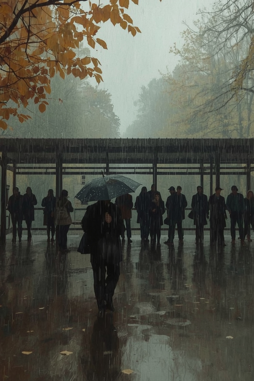 Дима стоял на остановке и ждал автобус. Моросил нудный осенний дождь. Под навес остановки набилось много народу, поэтому он стоял под зонтом рядом. Синоптики снова напутали, обещали облачность без осадков, а дождь как зарядил с обеда, так не собирался стихать.