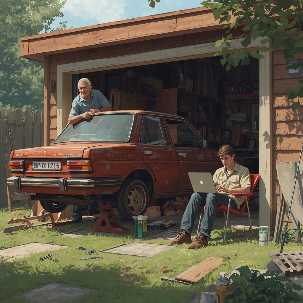 — Хватит с телефоном сидеть! Совсем уже оборзел! Иди помоги мне с колесом! — сказал отец Васе, выглянув из гаража, где его старенькая ласточка уже второй час стояла на домкрате.