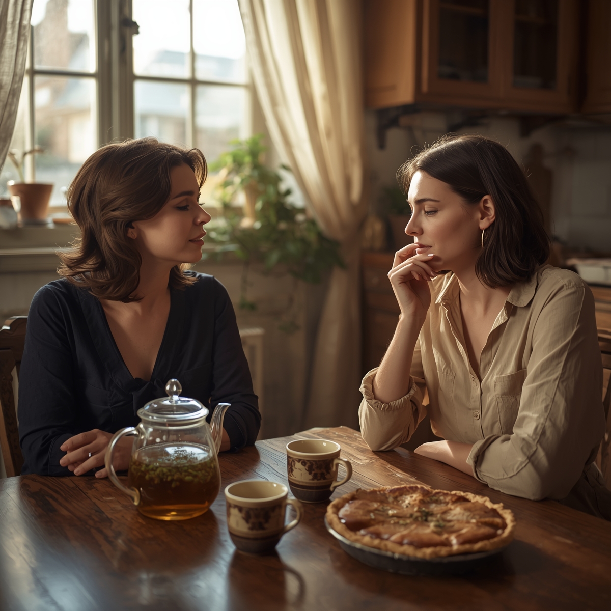 – Ну, рассказывай! – с нетерпением бросила она, приглашая гостью за стол, на котором уже красовался пирог с яблоками, две красивые керамические чашки и прозрачный чайник со свежезаваренными травами.