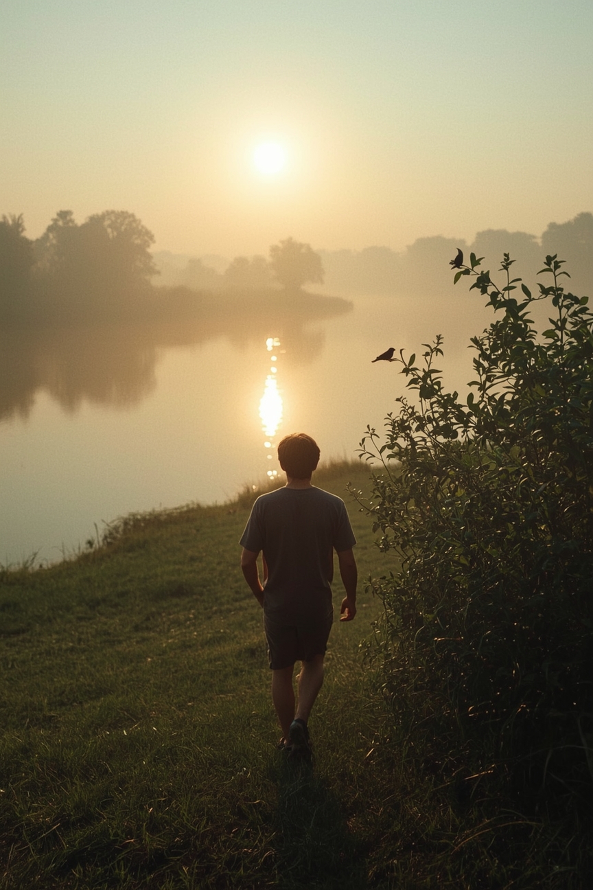 Илья спускался с пригорка к реке. Погода была хорошей, и день обещал быть жарким. Раннее утро распустило туман у реки, как капроновое лёгкое покрывало, и птицы уже вовсю щебетали в кустах.