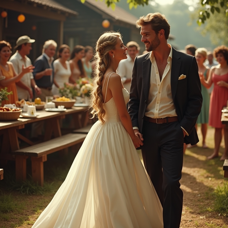 Свадьба пела и плясала. Жених Николай с нежностью смотрел на свою молодую невесту. Татьяна была чудо как хороша. Стройная, в белом платье, с длинной русой косой. Она стеснялась, что на нее смотрит столько народу и с обожанием смотрела на своего жениха, нет, уже на мужа.
