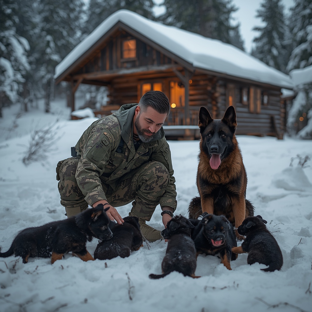 В ту ночь снег в Карпатах не просто падал. Он обрушился на горы с беспощадной яростью, пряча мир под толщей немой белой тишины. Сквозь самое сердце метели упрямо пробивалась мать — немецкая овчарка. Она тяжело брела сквозь сугробы, которые местами доходили ей до груди, осторожно сжимая в зубах крошечного, обессиленного щенка. Преодолевая каждый метр с собачьим упрямством, она шла вперед, несмотря на то, что ветер беспощадно бил её по морде и ослеплял глаза.Собаки