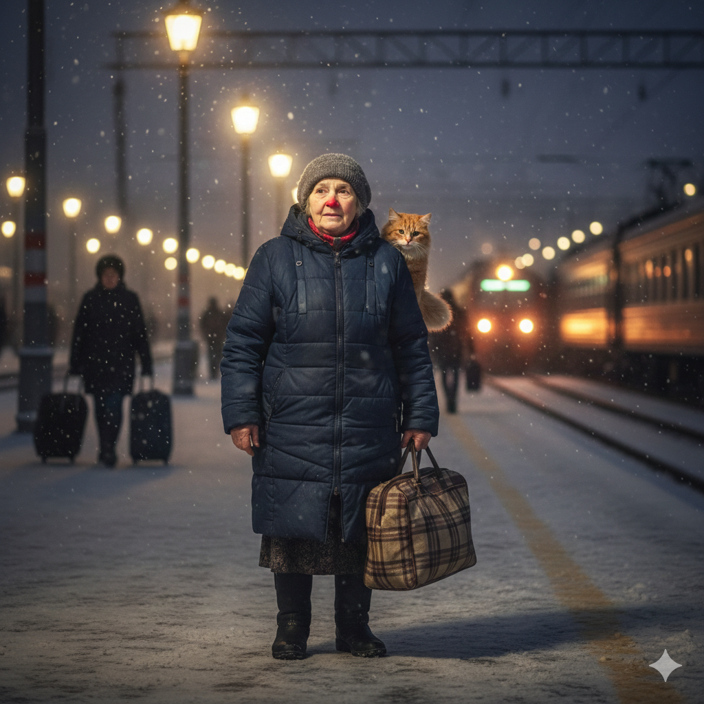 Проводница с недоумением посмотрела сначала на рыжего кота, потом – на пенсионерку, и… широко улыбнулась. Поняла, что это спектакль такой был. Новогодний.