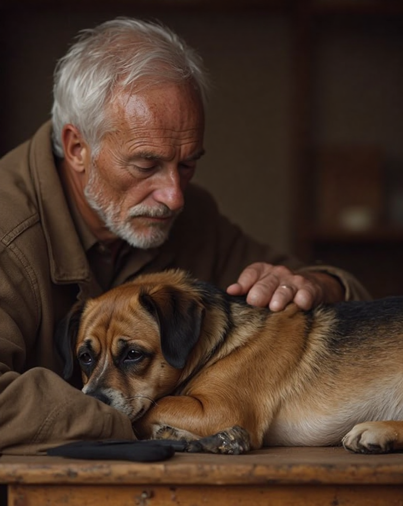 Иван Петрович вошёл, будто нес на себе не только тело пса, но и весь свой возраст, всю свою боль. Он не смотрел ни на стены, ни на врача — только в пол. Подошёл, встал у стола и чуть наклонил голову — так, как здоровается старый друг.