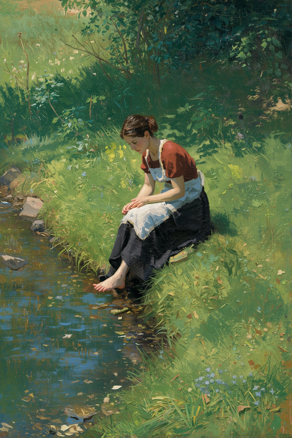 Весенним днем, когда майская зелень и цветение дурманили голову, Люда, позвала подружку Галку и вместе пошли к ручью. Сочная трава была мягкой и казалась шелковистой, а журчание ручья слышалось еще издали. Они обе остановились, как вкопанные, гадая, кому понадобился их ручей.