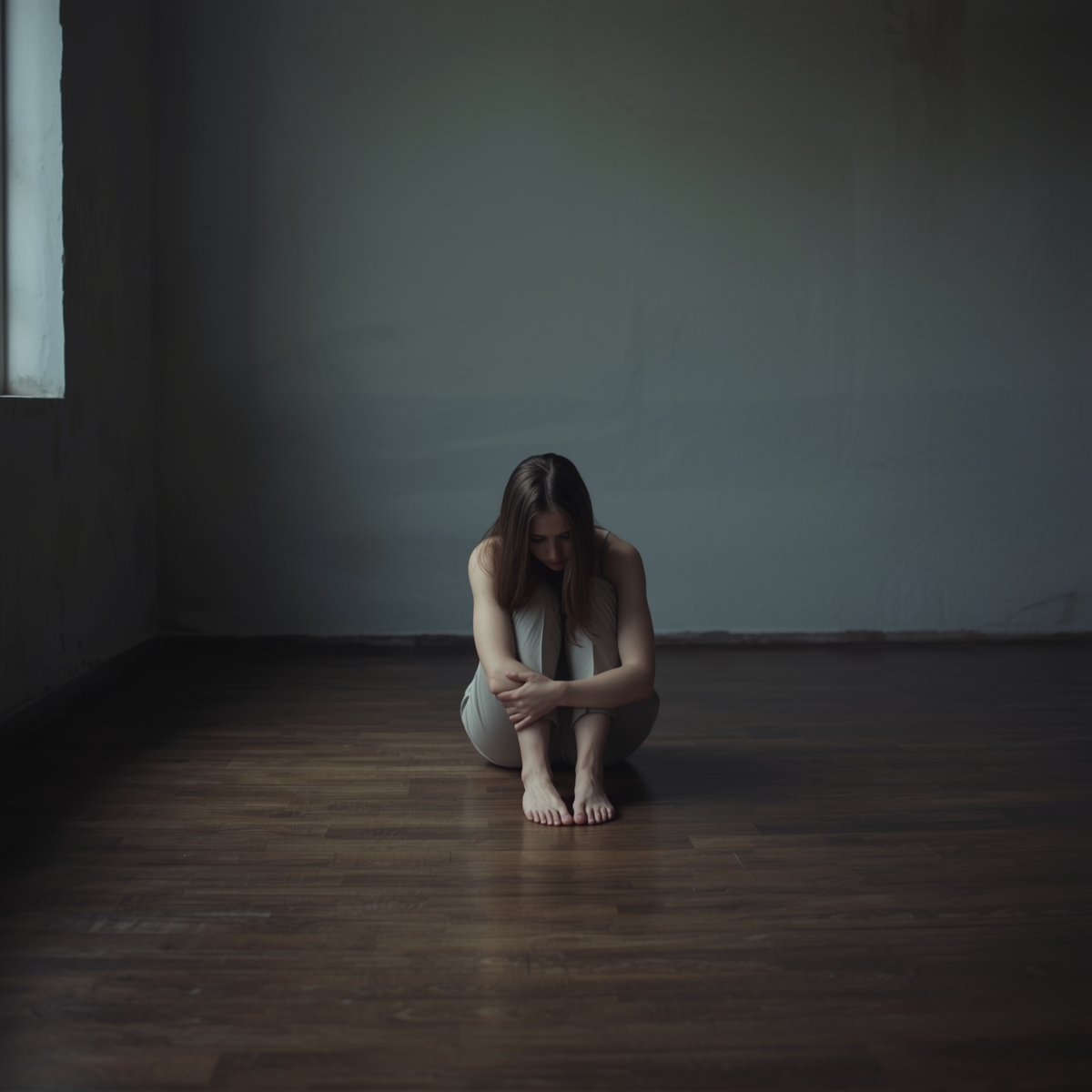 Девушка плакала, сидя на полу абсолютно пустой комнаты. Прислонившись спиной к стене она рыдала навзрыд, уткнув голову в подогнутые коленки.