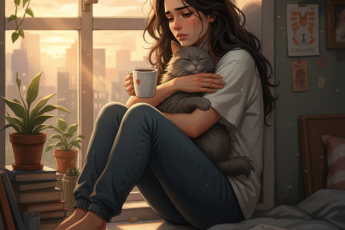 Настя подняла котейку на руки и засунула под пальто. Собака залаяла на неё.