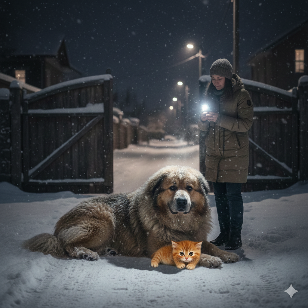 В ответ собака приоткрыла пасть, котёнок, вполне живой и здоровый, упал на снег и громко замяукав, заковылял под живот сидящей собаки.