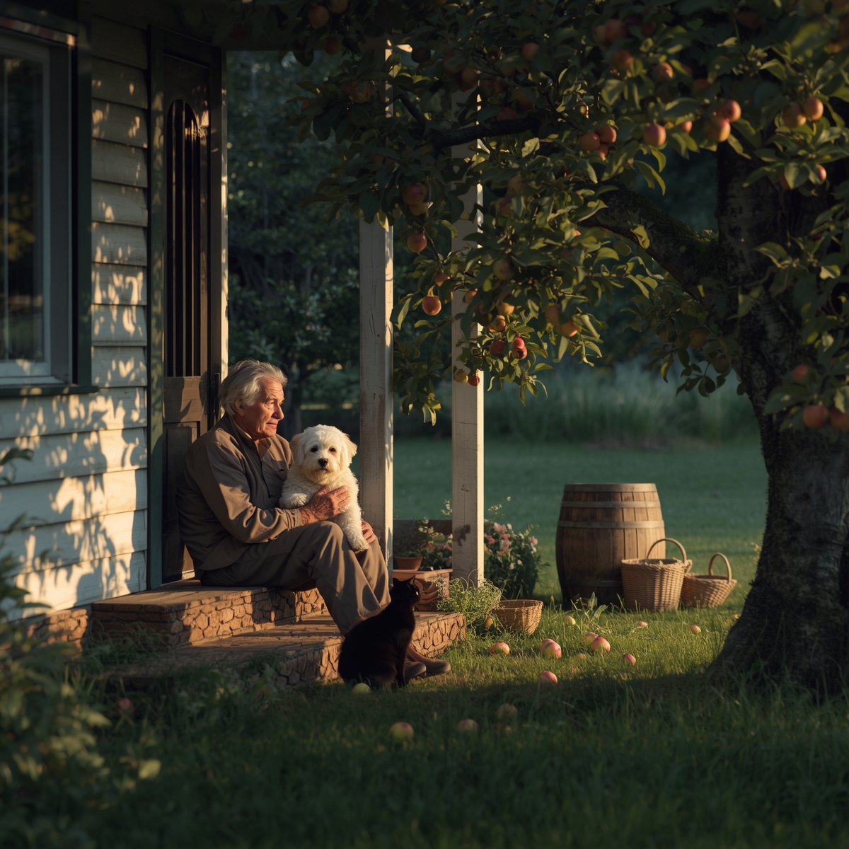 Вечером этого же дня, отец и сын сидят на ступеньках крыльца.