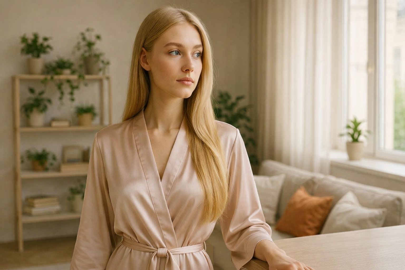 В этот момент из комнаты вышла сама Алина. В халатике, с растрёпанными волосами.