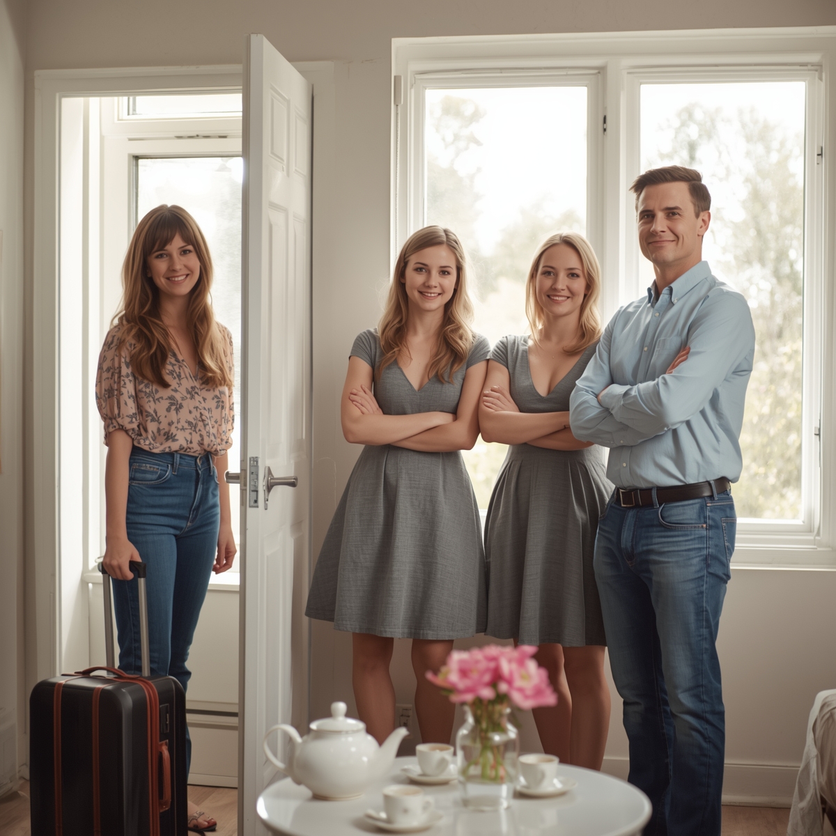 На пороге стояла Нина Петровна — в пуховике, с фирменной улыбкой «я пришла с миром, но останусь надолго». В одной руке пакет с продуктами, в другой — чемодан. За её спиной — Настя, тонкая, бледная, с огромными глазами, будто из фильма про сирот.