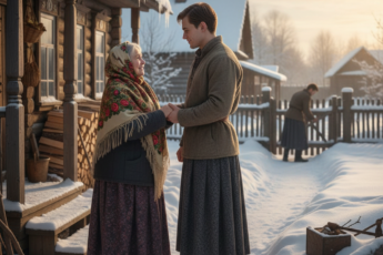 «У Агриппины, должно быть, и вещи Леночкины остались. Пригодились бы моей сиротке», думала Надежда, подходя к избе невестки. Время было раннее, и у самой двери она остановилась, раздумывая, удобно ли будить невестку в такой ранний час. Но вот в предрассветной тиши ей послышался тихий говор и смех. Голос был, вроде как, Агриппины.