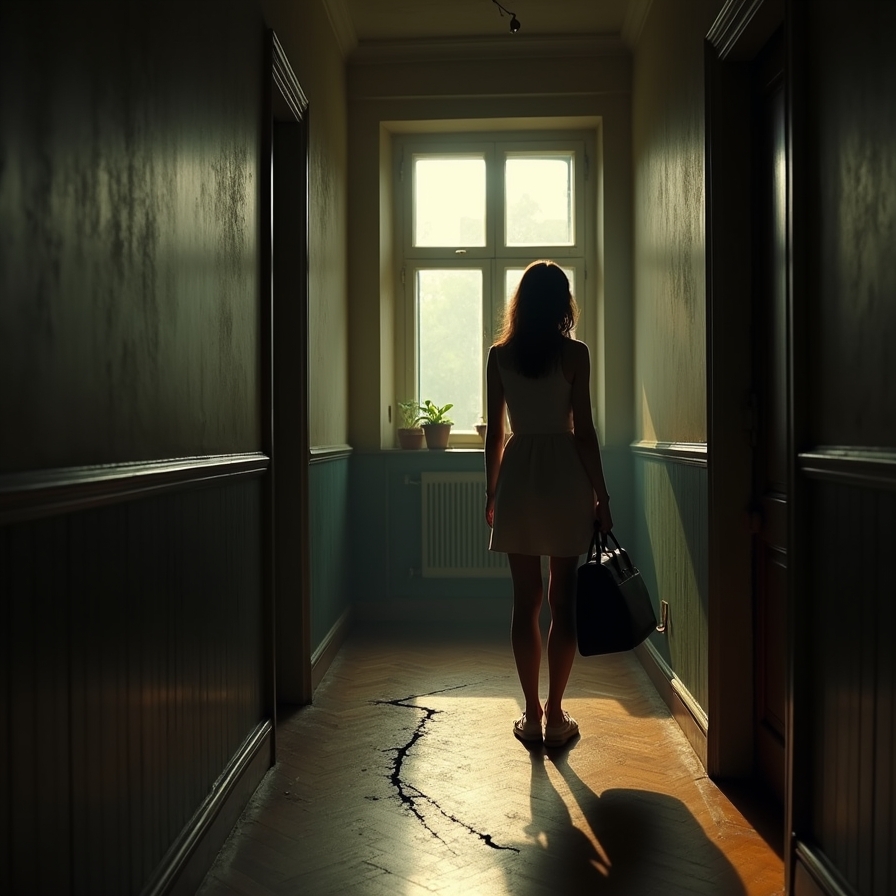 Стены пахли чужими духами — сладковатыми, с горьковатым оттенком, как у дорогих духов, которые давно вышли из моды. На подоконнике в комнате остались светлые круги — следы от цветочных горшков, будто кто-то спешно убрал их перед приходом новой жилицы. А в углу прихожей зияла довольно заметная царапина на паркете — длинная, неровная, словно кто-то волочил что-то тяжелое к выходу.