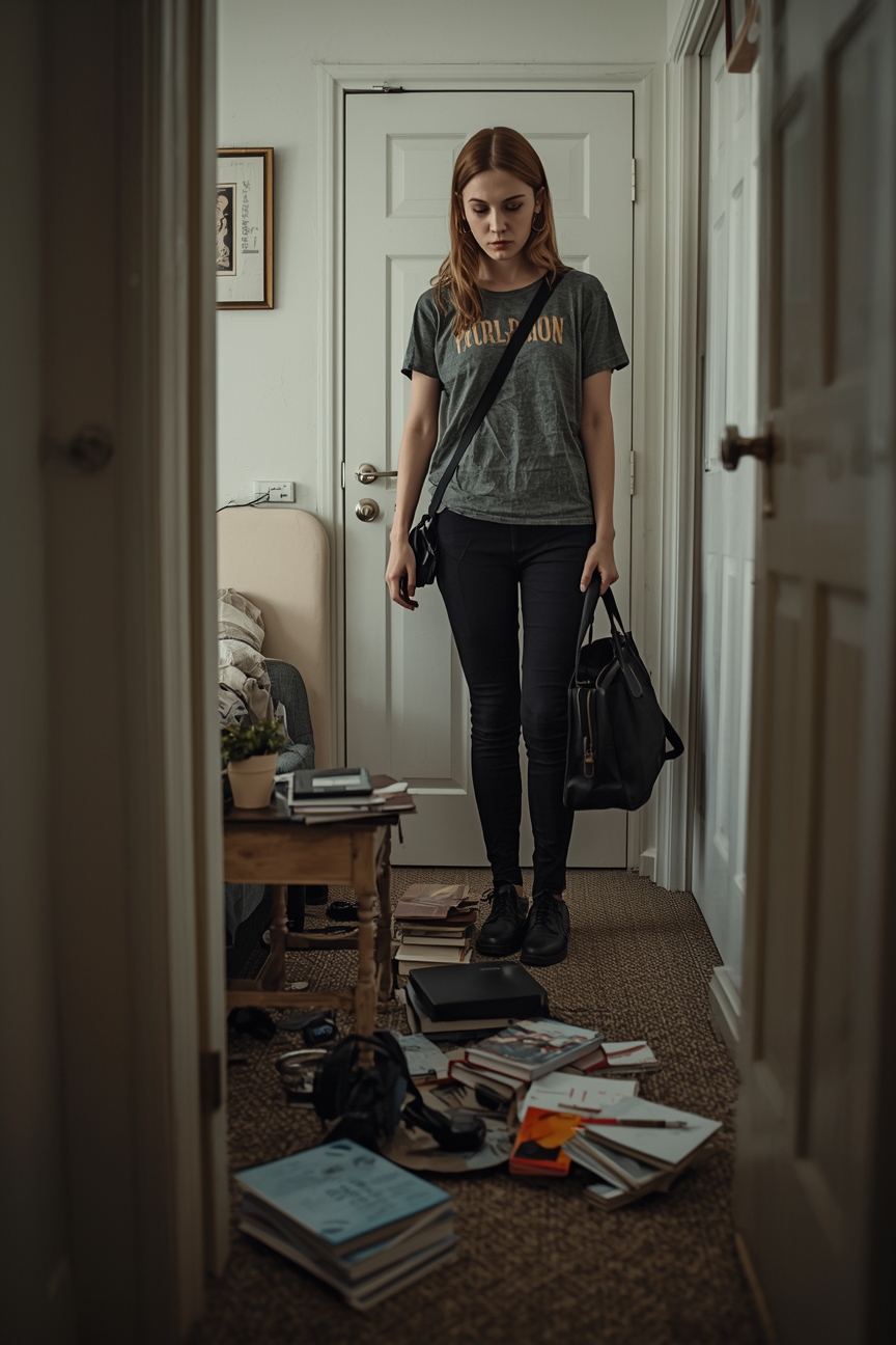 Уходя, Лера задела сумкой тумбочку. Посыпалось всё с тумбочки на пол, зазвенело. Цокнул плеер Максима. Отлетели какие-то куски. Максиму показалось, что вздрогнула земля. Лера мрачно посмотрела на обломки.