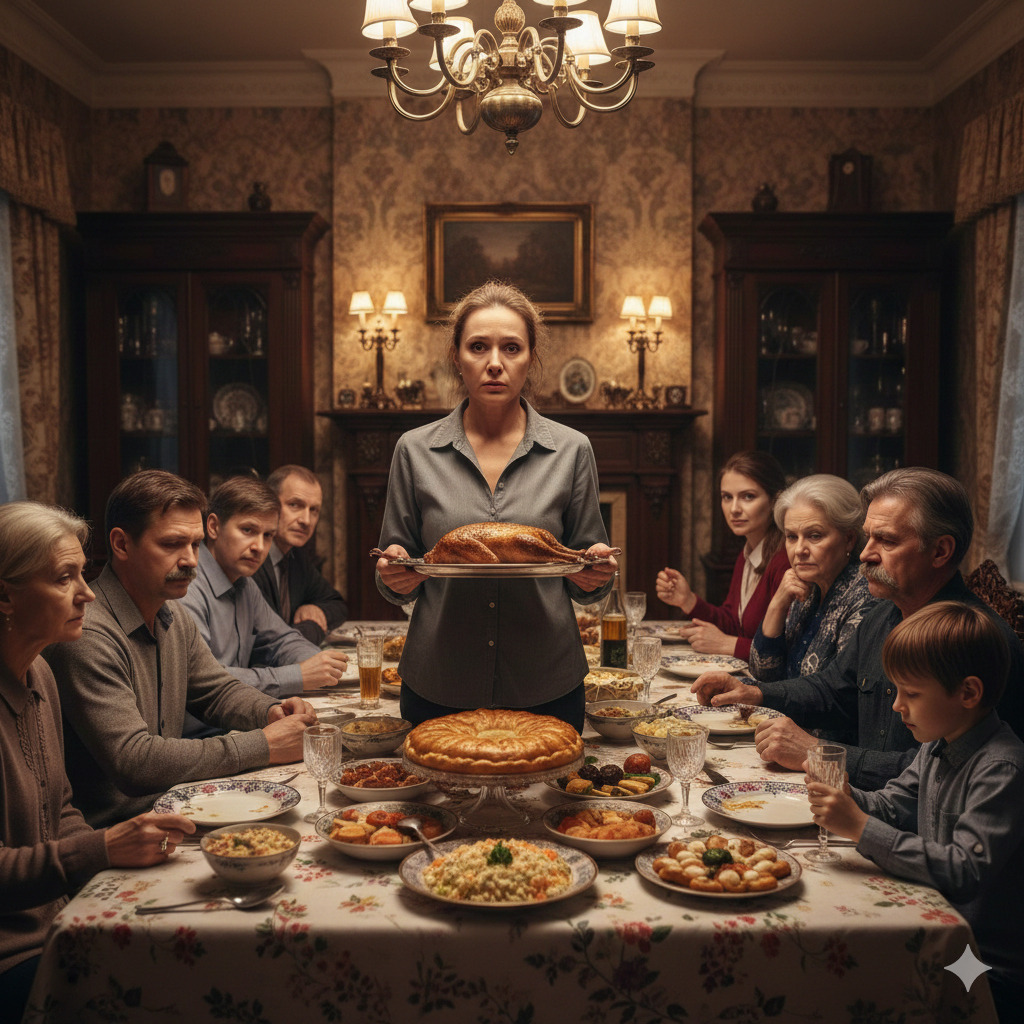 Двадцать пять гостей смотрели на неё. Вера стояла с подносом, а свёкор медленно пережёвывал кусок утки, которую она готовила шесть часов.