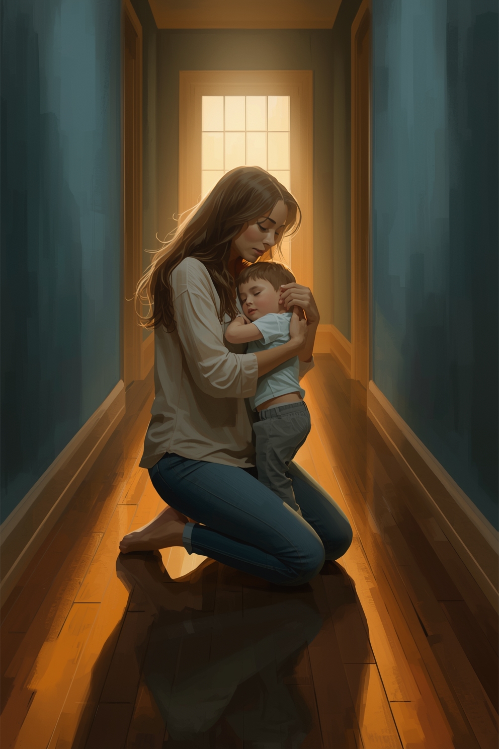 Вечер медленно опускался на город, окрашивая небо в нежные оттенки заката. Рита укладывала маленького Мишу спать. Она заботливо поправила одеяльце, поцеловала сына в щёку и тихо вышла из комнаты. В этот момент в дверь позвонили.