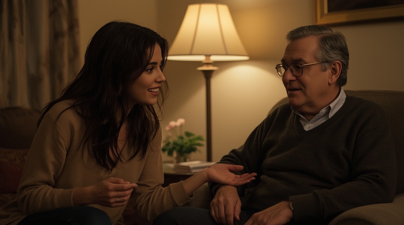 Надя осталась дома и отец позвал её в свой кабинет.