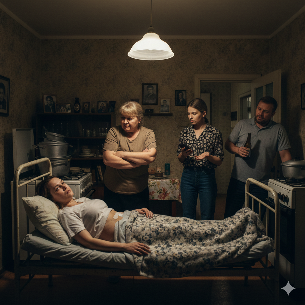 — Мама, я в больнице. Мне сделали операцию и нет сил разговаривать, мне плохо. Привези мне тапочки, я забыла.