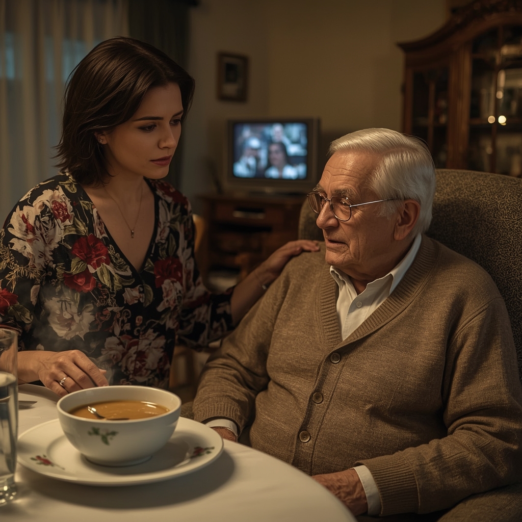 Он как-то странно смотрел на суп с таким выражением, которое Лариса не смогла понять, как будто увидел в тарелке что-то необычное. Его руки, покрытые пигментными пятнами, сжали ложку так сильно, словно он боялся её выронить.