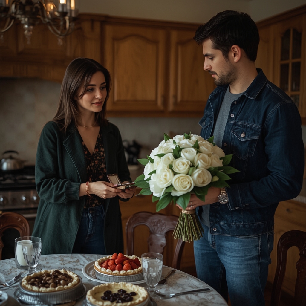 Первым появился её муж Сережа. С пышным букетом ее любимых, нежнейших пионов. И чуть ли не с порога, вдохнув аромат домашних кушаний, вручил ей хрупкие цветы и бархатную коробочку :