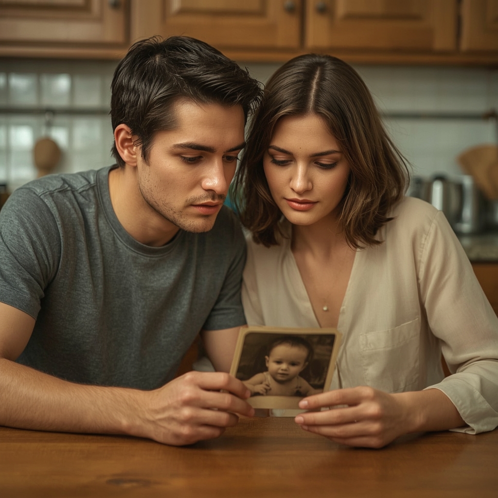 Когда Лариса вернулась домой, Сергей сидел на кухне с фотографией перед собой. Лицо его было каменным.