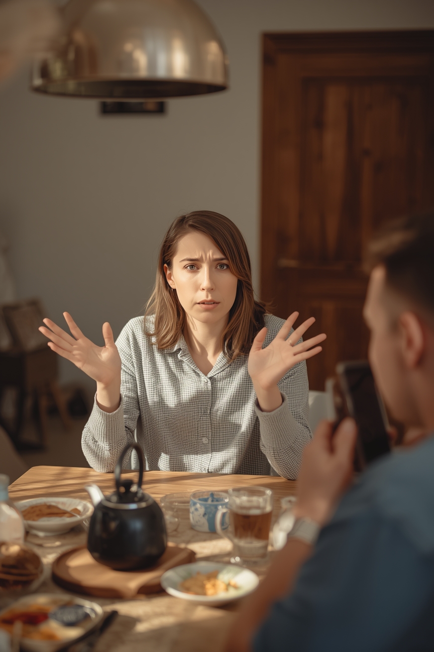 Денис прошёлся по кухне, явно пытаясь совладать с подступающим гневом. Он остановился у окна, побарабанил пальцами по подоконнику, потом резко развернулся.