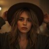 * Younger Woman: Appears to be in her late 30s to early 40s, Caucasian with a fair to medium skin tone. She has a lean to athletic build, appearing of average height. Her hair is dark brown, shoulder-length, styled in loose waves, pulled back slightly from her face. Her facial features are sharp, with prominent cheekbones and a determined expression. Her eyes are a medium to dark color, looking directly at the camera with a serious, perhaps confrontational, gaze.