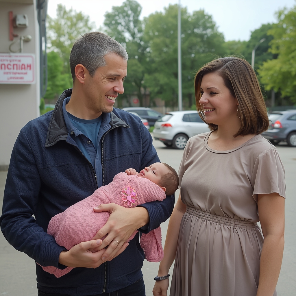 Вот выписка из роддома. Муза стоит с идеальным макияжем и огромным букетом, а рядом Виктор держит розовый конверт. И лицо у него на этом фото не светится от счастья. У него вид человека, которого сейчас хватит инфаркт. Серый, осунувшийся, с испуганными глазами.