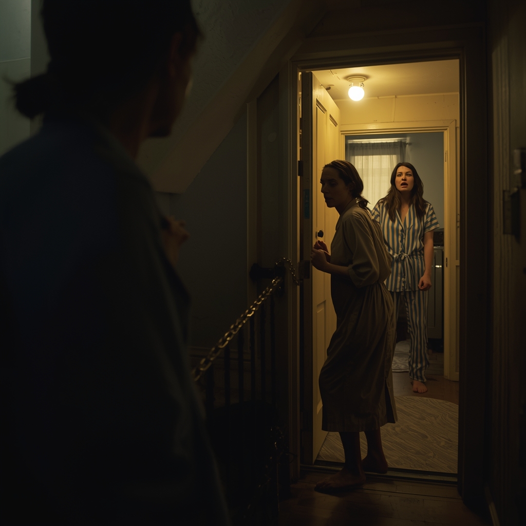 — Эй, вы двое достали уже, ночь на дворе – либо зайдите, либо выйдите, но хватит через дверь переругиваться, дайте поспать, а то сейчас полицию вызову! – выскочила в подъезд Людина соседка.