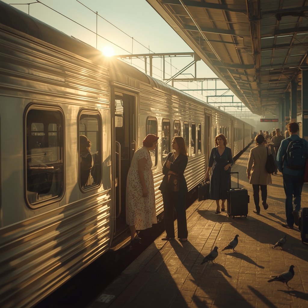 Поезд стоял у перрона. Солнечные блики ложились на окна вагонов, а в воздухе стоял запах утреннего кофе и горячих пирожков из вокзальной забегаловки.