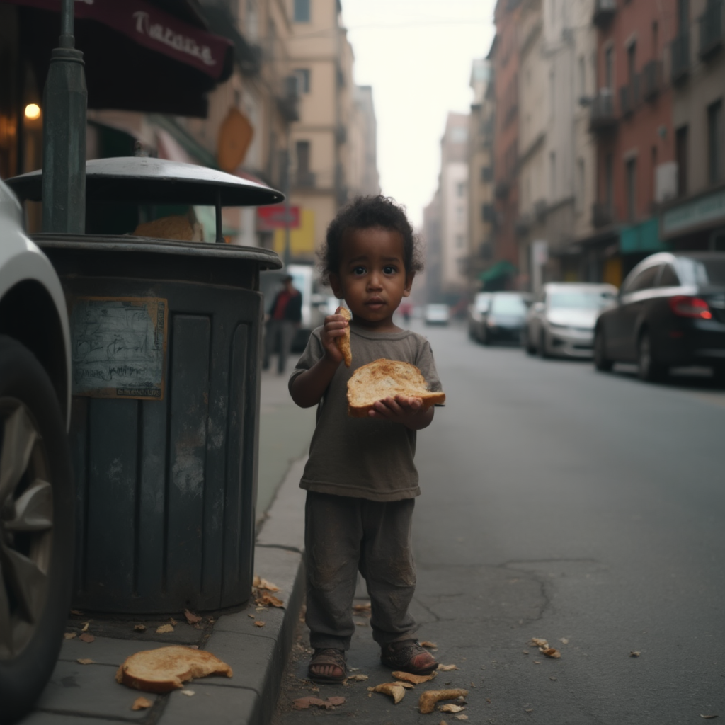 Увидел, как ребёнок доел ломтик хлебушка, отысканный в мусорке, и решил за ним проследить