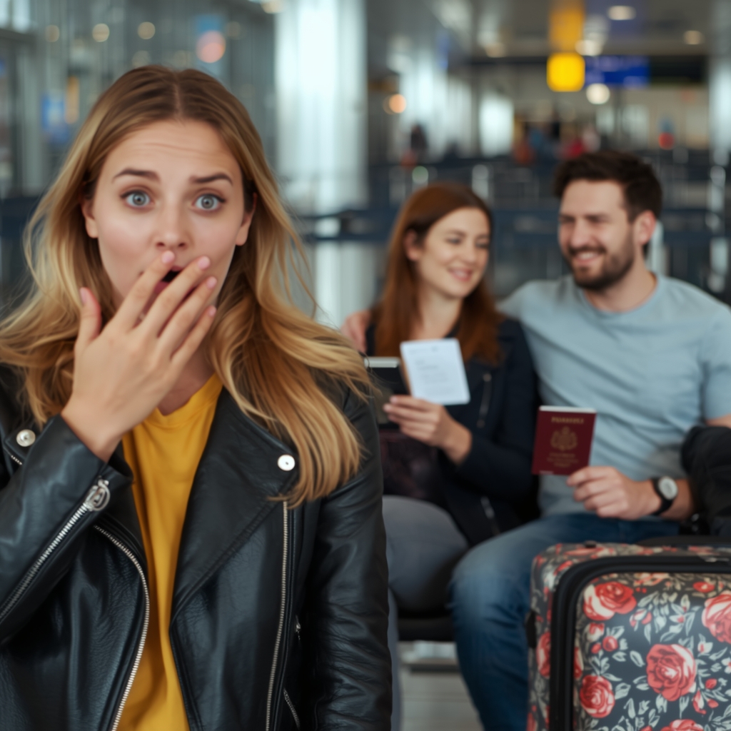 Я обернулась и застыла, не веря своим глазам. К нам, маневрируя между чемоданами и раздражёнными пассажирами, пробиралась Марина — сестра Андрея. На ней были огромные солнцезащитные очки, белая панама и ярко-розовый спортивный костюм, который она явно считала подходящим для путешествия. За спиной у неё громыхал ярко-малиновый чемодан размером с космический корабль.